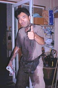 | 被害にあったKSさんの談話 「Kさんが前に乗れっていったので、私乗ったんです。そしたら後ろからKさんがまたがってきて・・・・・・。気が付いたときにはもう何がなんだかわかりませんでした。何とか宿に辿り着いて、深夜だったけどすぐにお風呂に入りました。だって、泥臭くて、たまらなかったんだもの・・・」 KSさんの叫びを無駄にしてはいけない。 文春2000年8月30日 発売号 被害にあったKSさん ええ顔してはるわ。 |