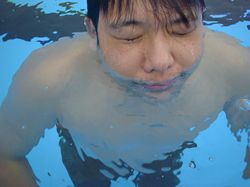 鳥居「まあまあ、スカットしとこうや、ここはな」 木田「ここにきてダジャレっすか? ・・・ところで、プールの写真ってこれだけッスか? なんか不自然ッスね」 鳥居「そうか? 俺は全然、そんなふうには思わんけどな。まあ、気になるんやったら前髪のついでに探してみろや」