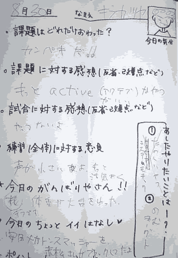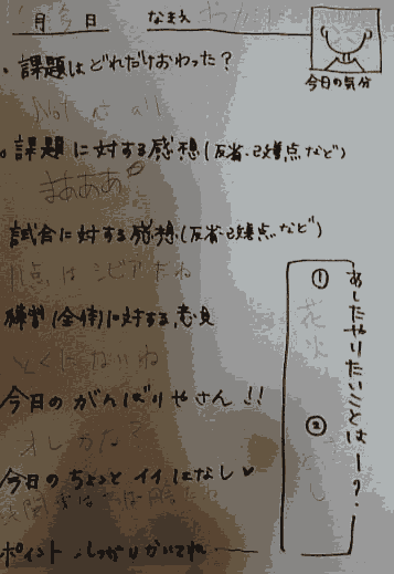 鳥居「薄くなって見えにくいですが、安田君のアンケートからの抜粋です。”自信たっぷりで打ったスマッシュを(赤松さんに)普通に返された”と書かれています」